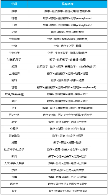 A-Level热门专业选课组合