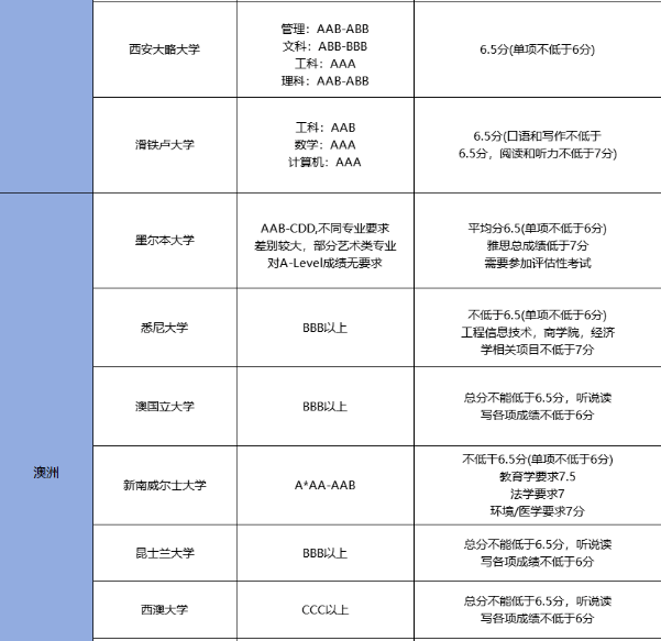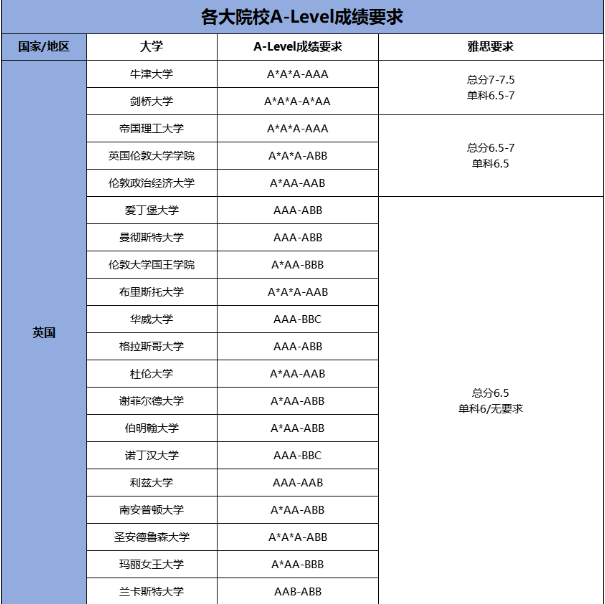 在申请英国大学之前,大家可以去各高校官网查看自己想申请的专业的成绩要求,不过需要注意的是,因为近几年申请英国本科的人数越来越多,大家仅仅达到大学官网上写的成绩要求是不够的。而申请英国G5院校,则要求学生达到A*A*A-AAA,并且不同专业对于学生的科目也有要求。