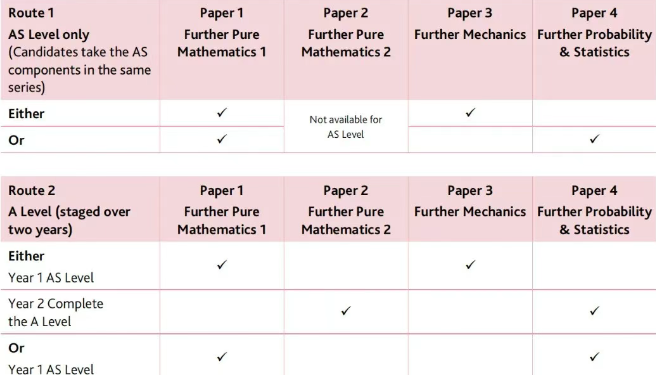 对于进阶数学(9231)4科来说,也是有限组合,AS选修FP1+FS,A2选修FP2+FM;或者AS选修FP1+FM,A2选修FP2+FS。