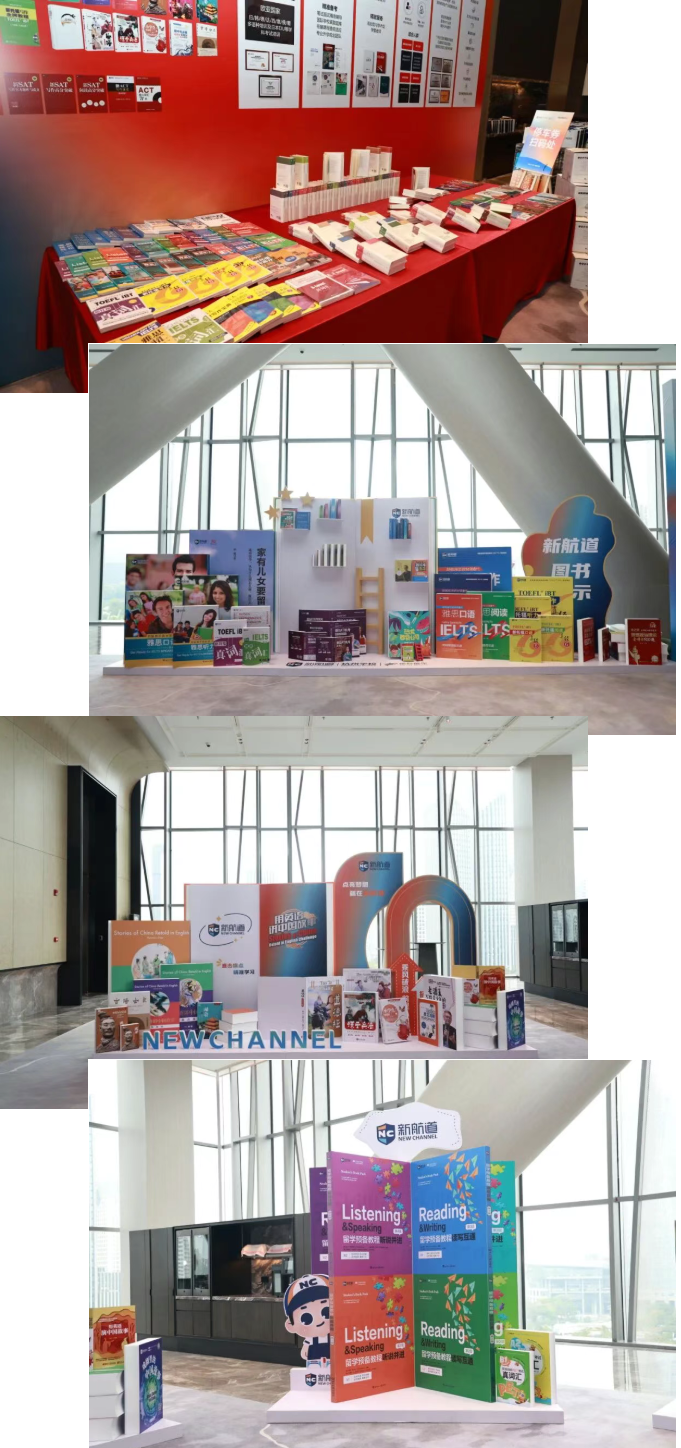 在签到处旁边,陈列着新航道自主研发的图书与教材,吸引了不少家长驻足翻阅,亲身体验新航道“学术实力筑就教学品质”的深厚底蕴。新航道图书自2004年创立以来,先后引进和原创图书、音像产品450余种。