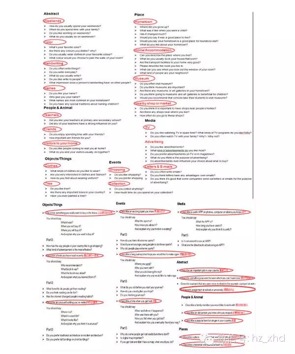 Weekends、Color、Handwriting、Names、Hometown、Home/Accommodation、Museum、Nearby shop or market、TV、Letters & E-mails、Clothes、Tree、Shopping、Collection、Friends、Teachers、Visitors to your home